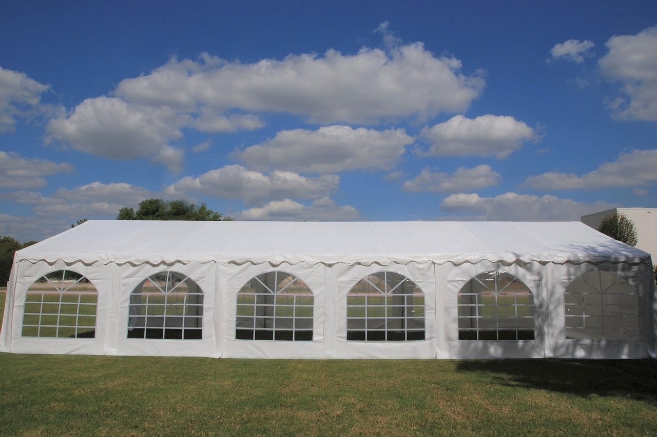 20′ x 20′ Party tent rentals waterproof, with UV protection Removable window are great for weddings, anniversaries, birthdays, retirement parties, outdoor social events, corporate events and more rentals.