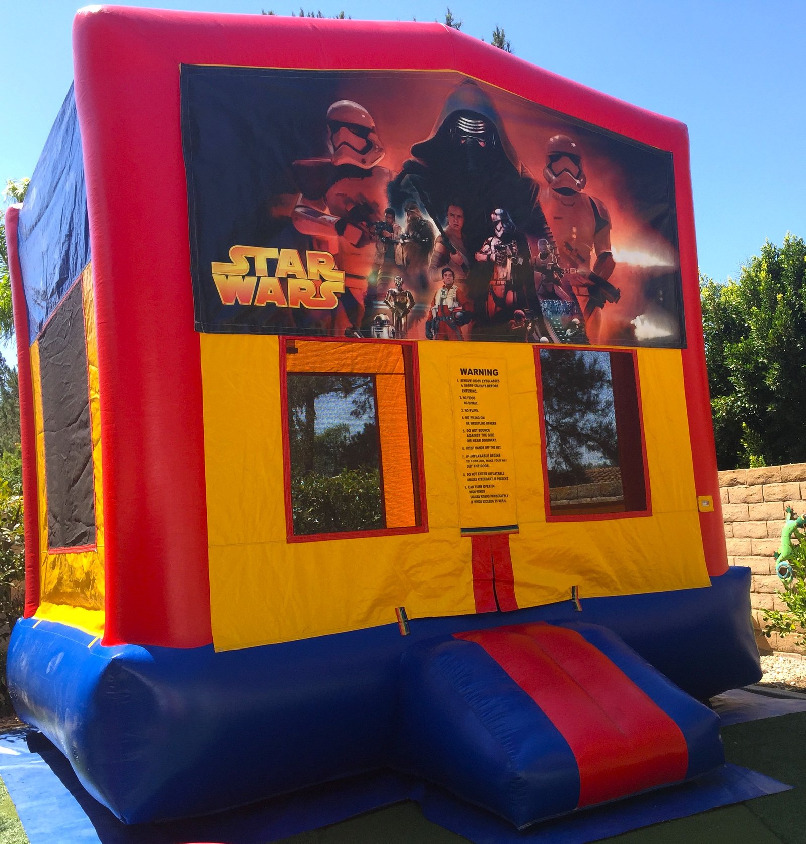 Basketball hoop, Feature and a super fun dry Portability For any indoor and outdoor Setup Area Requirements: Setup area of at least: 15ft x 16ft x 15ft. Bouncer: measures13w x 13 x 15 A clear, 3’x 6′ pathway to the setup area. 1 – Standard (120v/20a) electrical outlet. Generators are required for Parks/Fields. Sorry, we cannot set up on dirt, rocks, sand.