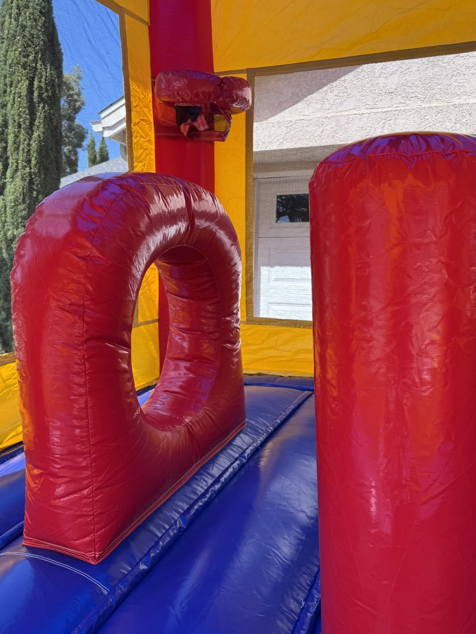 Basketball hoop a climbing Feature and a super fun dry slide! Setup Area Requirements: Setup area of at least: 20ft x 20ft x 16ft. Slide Bouncer measures 20L 19W 16H A clear, 3′ x 6′ pathway to the setup area. 1 – Standard (120v/20a) electrical outlet. Generators are required for Parks/Fields. Sorry, we cannot set up on dirt, rocks.